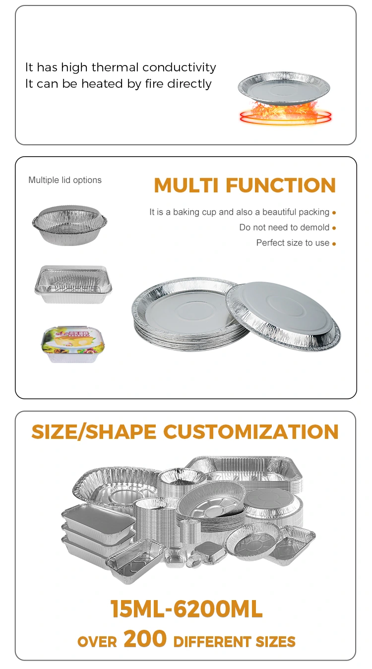この製品の台形の形状は、美学を追加するだけでなく、簡単に積み重ねて保管し、ストレージスペースを効果的に保存することもできます。同時に、このデザインはアイテムを撮影する方が便利になり、野生にいるときは簡単に滑り落ちることはありません。これにより、使用の安全性が大幅に向上します。さらに、10インチピザパンシルバーアルミホイル容器には軽量のデザインがあり、屋外ピクニックに最適です。いつでもどこでも、自宅でも屋外でも、あらゆる機会に簡単に対処できます。