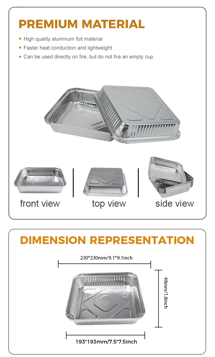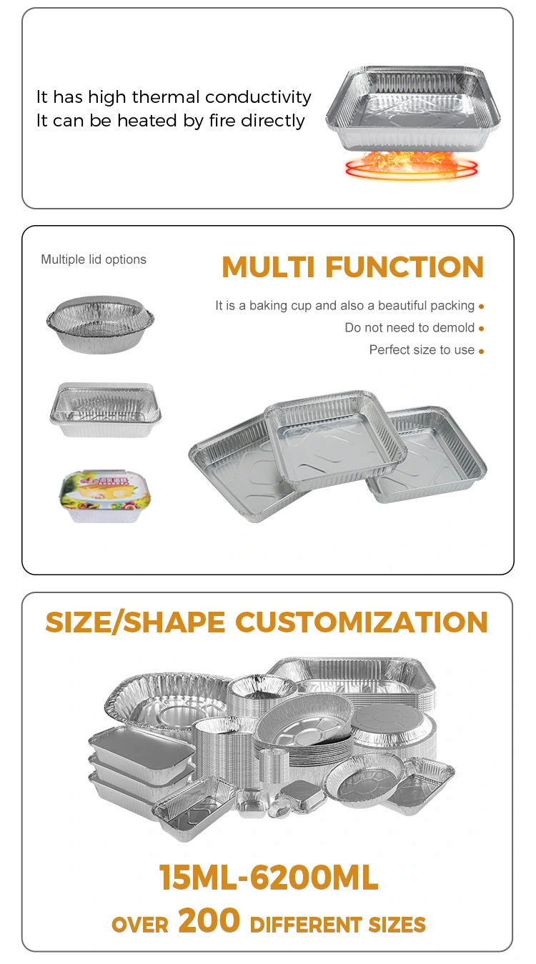 Yunchu Aluminium Foil Supplierは、使い捨てのBBQ串焼き銀アルミホイル容器を生産します。これは、テイクアウトの注文、パン屋の小さなケーキ、家族のスナック、レストランに適しています。安全で健康的で、食品のアイデアは制限されません。キッチンの調理器具は、食べ物、エアフライヤー、その他の機器を簡単に調理するのに適したパートナーです。耐熱性とオイルプルーフ、焼き方が簡単、屋外バーベキュー、一時的なボウルは火を恐れません。デザインはあなたの手を掻くのを避けるために思慮深いです。さまざまな使用シナリオに合わせて、複数のサイズを選択できます。ご質問がある場合や詳細情報が必要な場合は、お気軽にお問い合わせください。