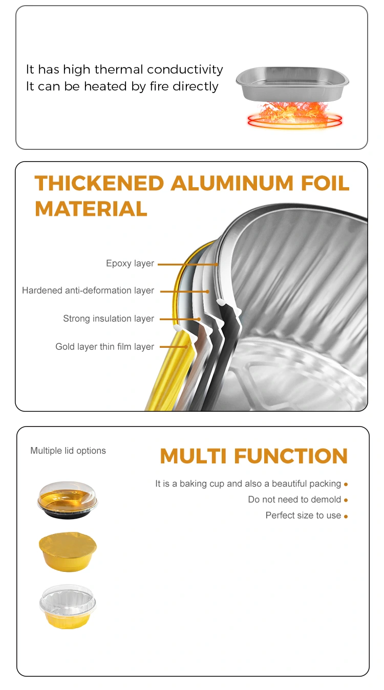 エッグタルト、ブラウニー、カップケーキ、ピザのスライスやサクサクしたペストリーに最適なパッケージです。アルミホイルの断熱特性により、焼き上がり直後のペストリーの暖かさと柔らかな食感が維持されます。風味がしっかり残っており、ベーカリーやカフェのテイクアウトに最適です。