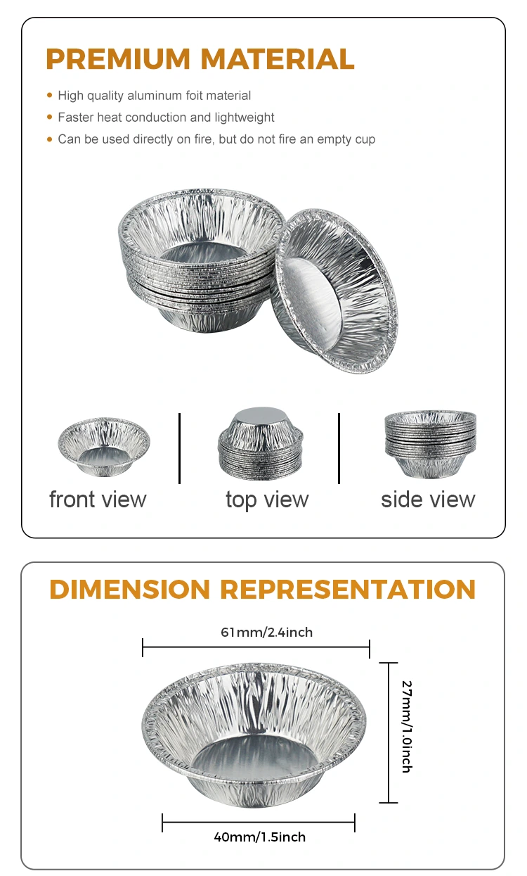 家族の集まりから商業的な大量生産まで、Yunchu アルミホイル使い捨てエッグタルトトレイシルバーアルミホイル容器はあらゆるシナリオに適応し、多様なおいしい可能性を解き放ちます。