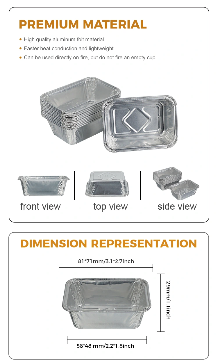 食品は事前に家庭で加工し、長方形のアルミホイル容器に詰めることができます。持ち運びが簡単で、食材を新鮮に保つことができます。野外キャンプに到着後、会場に用意された屋外バーベキューグリルで温めることができます。加熱後そのまま使用できます。使用後はそのままゴミ箱に捨てられるので、調理器具や食器の数が減り、外出の負担も軽減されます。野菜を炒めたり、調理済みの食事を温めたり。