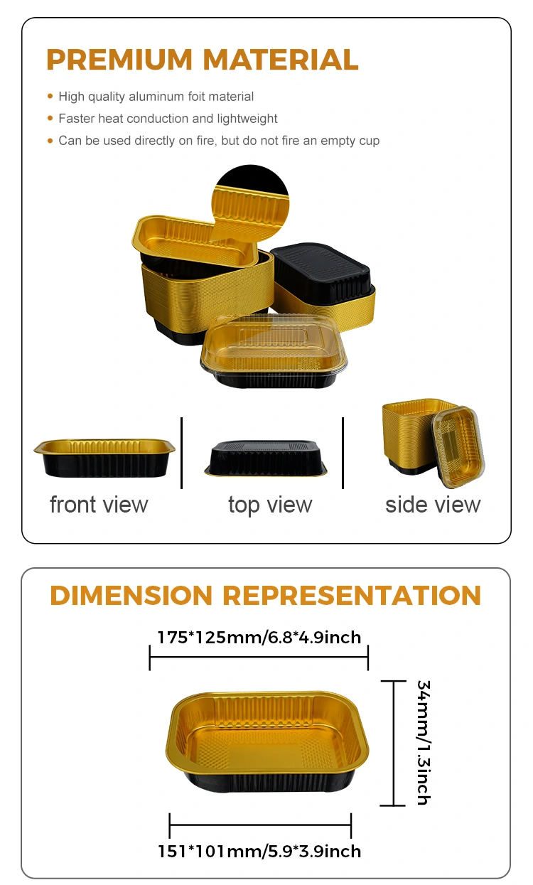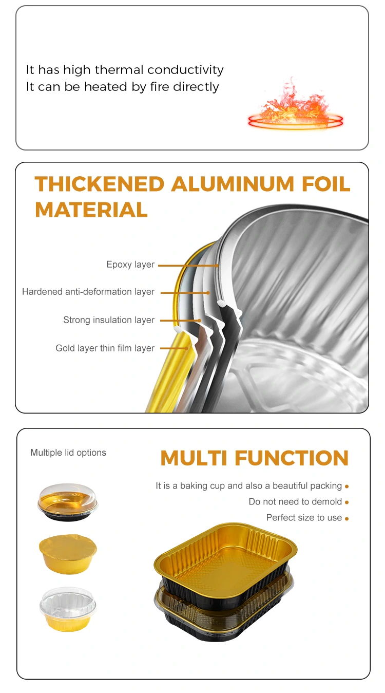 雲中アルミ箔サプライヤーの使い捨て長方形ケータリングテイクアウト軽量壁アルミ箔容器は、実用的で環境に優しいという点でさらに珍しいです。アルミニウム箔素材は無期限にリサイクルできるため、温室効果ガスの排出量が大幅に削減されます。使用後は簡単に圧縮でき、分別・リサイクルが容易で、プラスチック製弁当箱のような「白濁」を引き起こしません。これは、現在の環境保護トレンドに適合するだけでなく、企業がグリーン オペレーションに対する良いイメージを確立するのにも役立ちます。また、肉厚な質感と充実したタフさが特徴です。しわになりにくく、つまんでも壊れにくく、重いものを入れても変形しません。温かいスープを箱いっぱいに詰めても、破損やスープ漏れの心配がありません。価格性能比は、通常のプラスチック製の弁当箱や薄いアルミホイルの箱よりもはるかに優れています。
