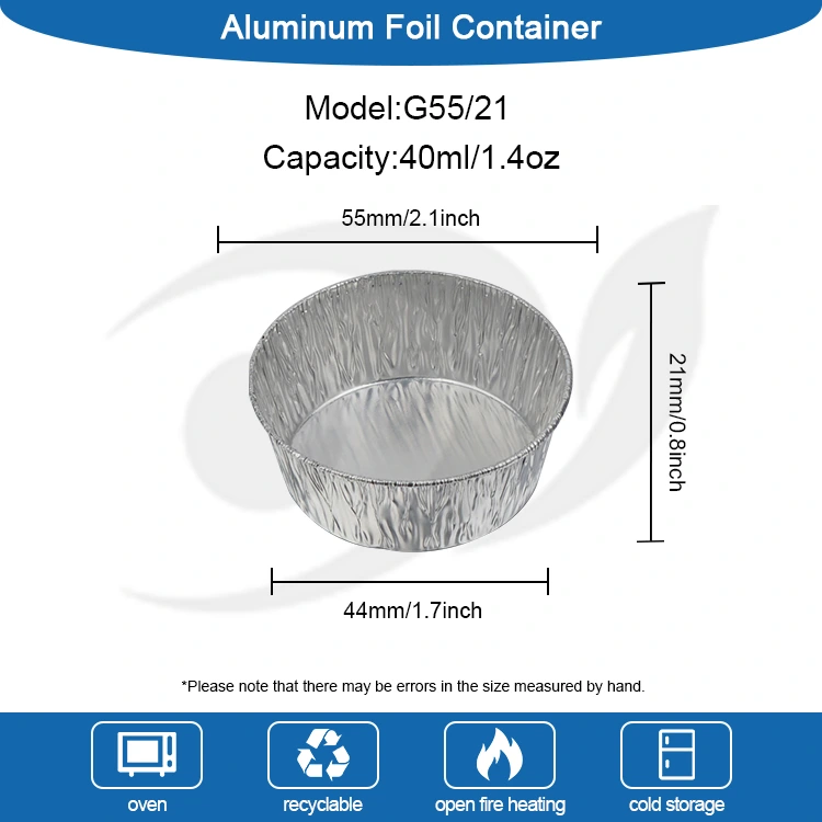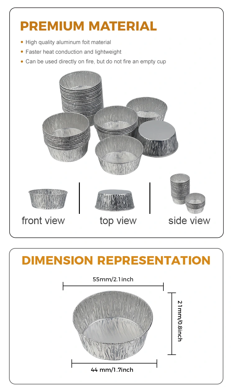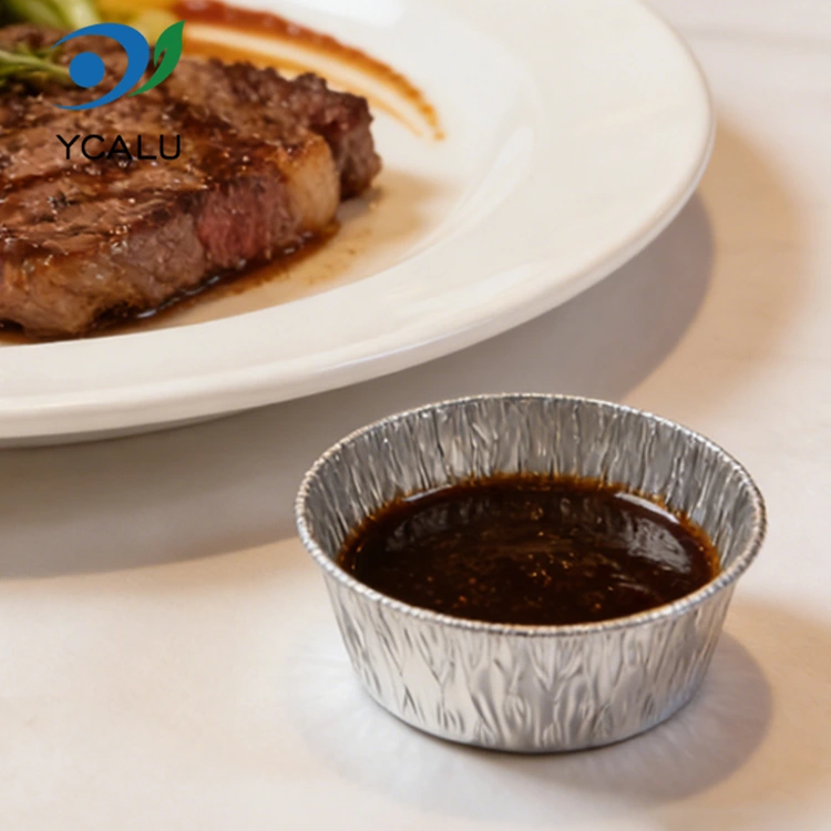 Yunchu アルミホイルサプライヤーの使い捨てシルバーラウンドディップエアフライヤーシルバーアルミホイルコンテナは使い捨てになるように設計されており、食後の皿を洗うという面倒な作業を完全に排除し、時間とエネルギーを節約します。アルミニウム箔素材はリサイクル可能で環境に優しく、負担が少なく、利便性とグリーンコンセプトを考慮しています。小さくて絶妙な外観、積み重ね可能な収納はスペースを取らず、キッチンの収納スペースを簡単に節約できます。家庭でもビジネスでも、この使い捨ての銀色の丸いアルミホイル容器は、高品質の素材と思慮深いデザインでディップの保管と使用の問題を解決し、すべての料理とすべての集まりをより安心して快適にします。