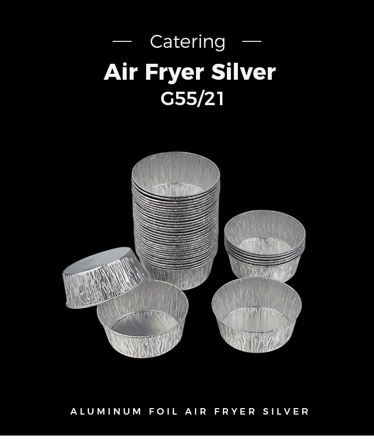 • 使い捨て銀ラウンドディップエアフライヤー銀アルミホイル食品容器使い捨て銀ラウンドディップエアフライヤー銀アルミホイル食品容器
