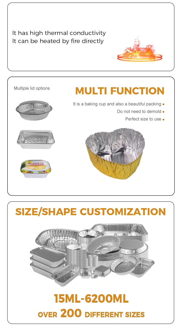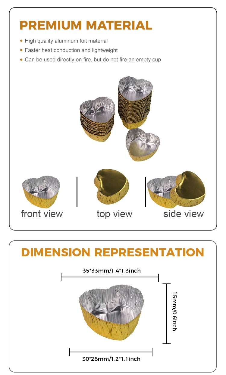 このハート型の小さなベーキングシルバーフォイルコンテナは、マカロン、クッキー、タルトなどのさまざまな小さなパン屋製品の梱包に適しています。すべての製品が国の安全基準を満たし、ドイツのERP認定、EU SGS認定、ISO9001認定を渡すことを保証するために、品質管理の観点からすべての生産ステップを厳密に制御します。