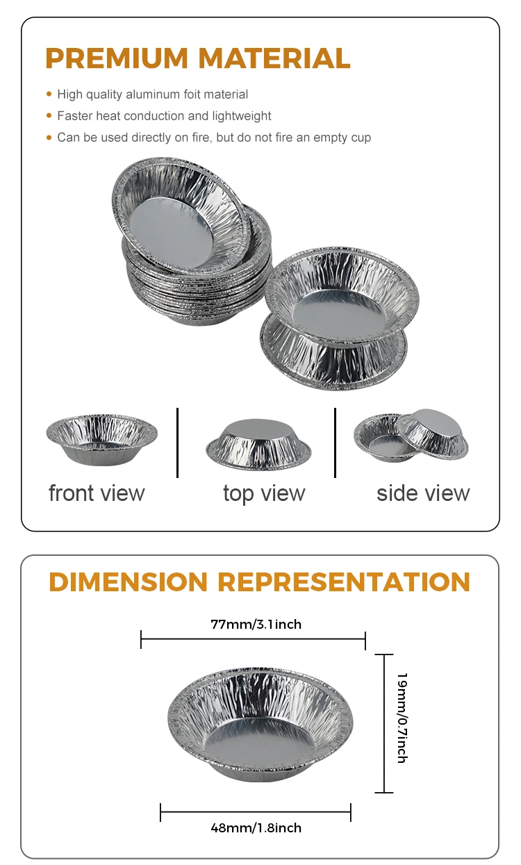 材料は安全で信頼性がありますか?カビをリリースするのは簡単ですか?使いやすいですか?この丸いタルトトレイシルバーフォイルコンテナは、すべてのニーズにぴったりです!