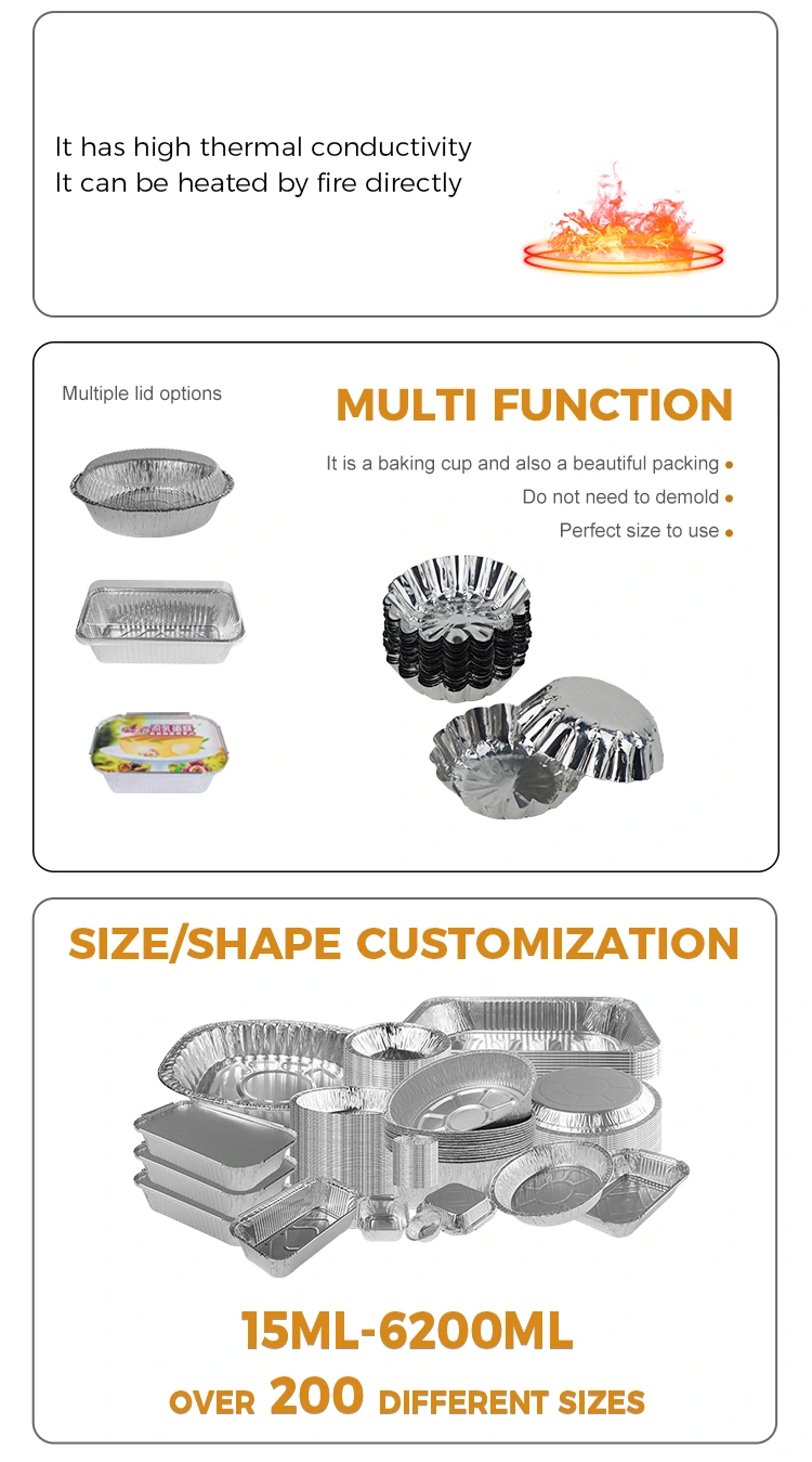 Yunchu Aluminium Supplier Round Egg Tart The Gaking Silver Aluminium Fool Food Container、さまざまな味、さまざまなサイズから選択するために、アルミニウム箔材料は安全で非毒性があり、アルミホイル材料で作られています。導電率、アルミホイル材料は変形、防水/油防止、優れた熱伝導性、蒸し器、エアフライヤー、バーベキューなどに入れることができます。さまざまなスタイルが利用可能で、さまざまな仕様とサイズが購入できます。変形、長期の蒸し、ベーキングは変形または亀裂ではなく、効果を完了するために製品の外観を助長します。