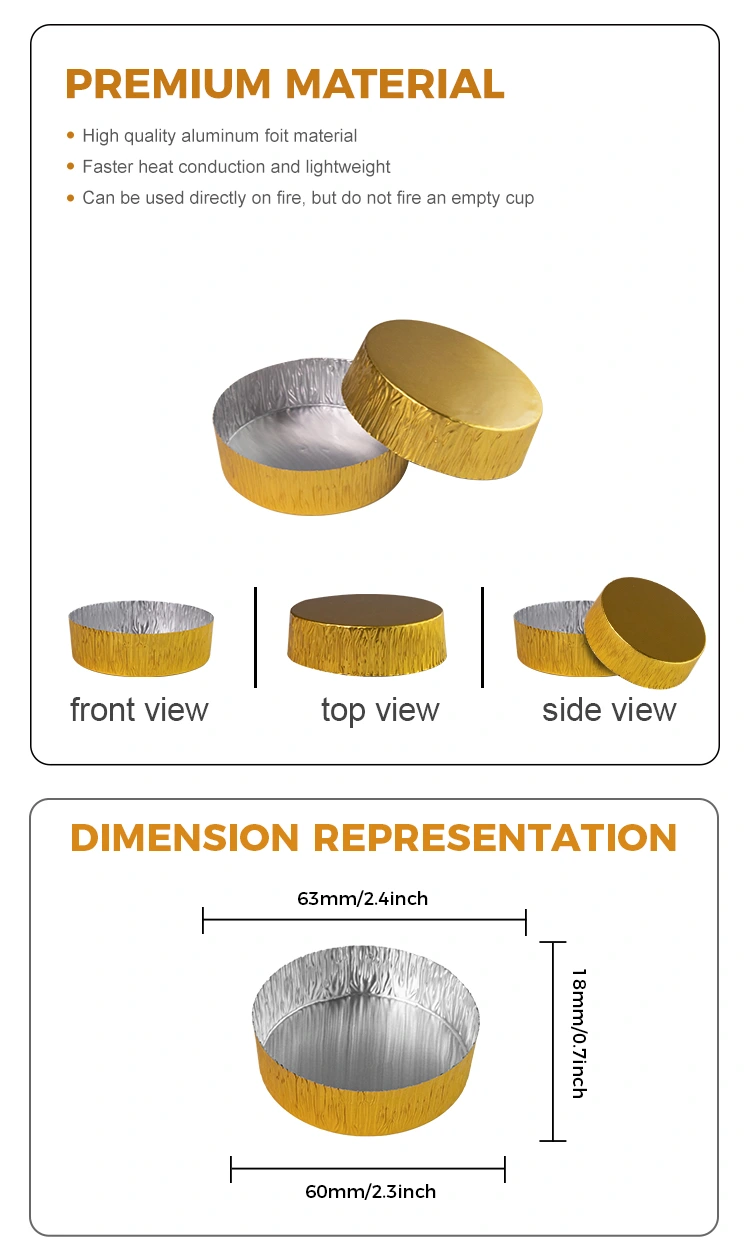 この丸い小さなベーキングシルバーアルミホイル食品容器は、マカロン、クッキー、タルトなどのさまざまな小さなベーカリー製品の包装に適しています。すべての製品が国家安全基準を満たしていることを保証するために、品質管理の面ですべての生産ステップを厳格に管理し、ドイツERP認証、EU SGS認証、ISO9001認証に合格しています。