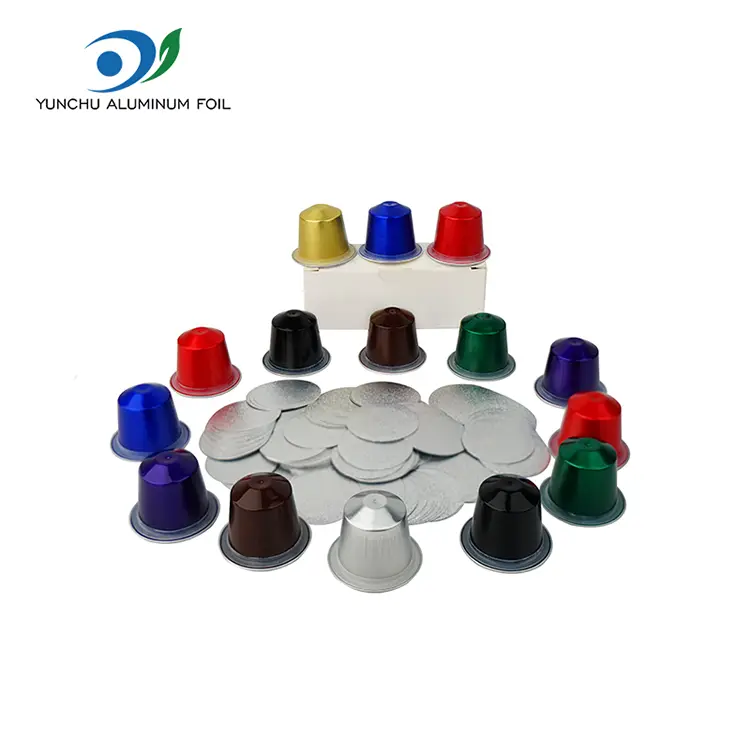 中国Yunchu Yunchu Aluminum Foilが生産するシリコンシール空のコーヒーカプセルは、環境保護と食品グレード技術の要件を満たす食品グレードのアルミニウム箔材料で作られています。熱シールのアルミホイル蓋は、暖房、強力な互換性、市場のほとんどのコーヒーマシンと互換性のある簡単な密閉のために提供され、Yunchuはコーティングされたアルミニウムホイルで作られたコーヒーカプセルを生成できます。