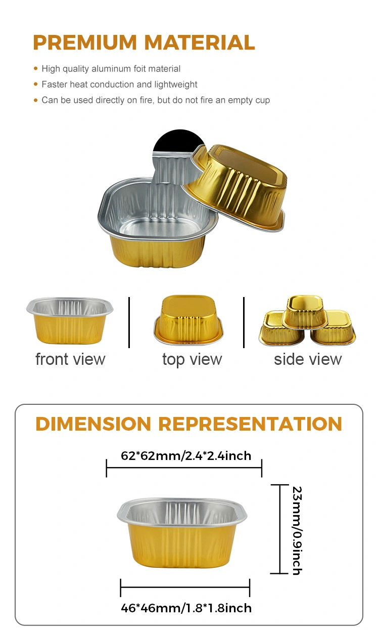 • スクエアデザートベーキングカップ Smoothwall アルミホイルコンテナスクエアデザートベーキングカップ Smoothwall アルミホイルコンテナ
